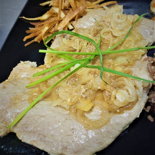 Sale guarnecido con Arroz moro o blanco, vianda frita, y ensalada de estación